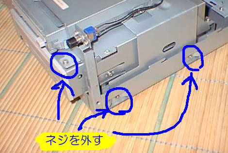 やっと、CDROMのベイが見えたところで、後ろの止めネジを外します